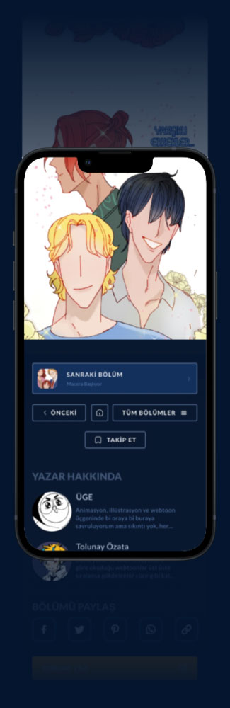 Paylaşmak istediğin bölümü açtıktan sonra ya ekranı 1 defa tıkladığında ekranın aşağı ortasında çıkacak olan paylaşım butonunu kullanarak, veya bölümün sonunda bulunan sosyal medya paylaşım butonlarını kullanarak bölümü paylaşabilirsin.